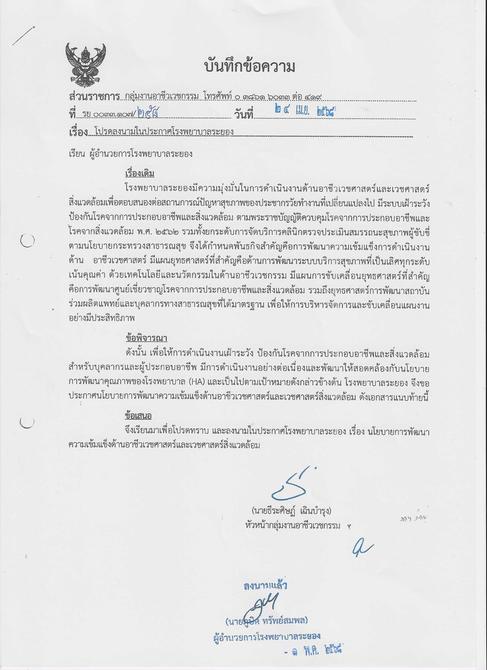 เอกสารจริยธรรมวิจัย รพ.ระยอง