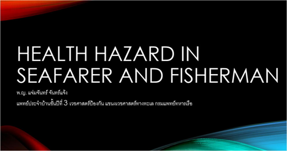 Health hazard in seafarer and fisherman โดย ร.อ.หญิง พญ. แจ่มจันทร์ จันทร์แจ้ง
