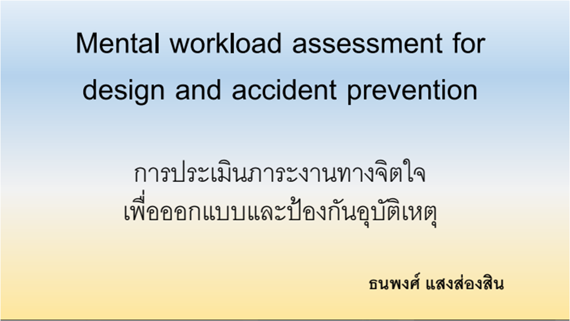 Mental workload assessment for design and accident prevention โดย นพ.ธนพงศ์ แสงส่องสิน