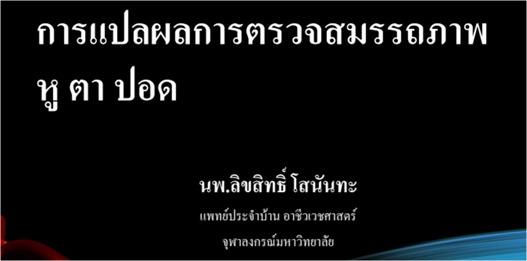 การแปลผลการตรวจสมรรถภาพปอด สมรรถภาพการได้ยิน และการมองเห็น โดย นพ.ลิขสิทธิ์ โสนันทะ