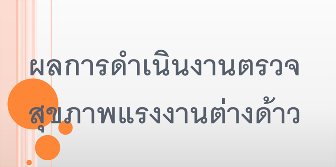 รายงานผลการดำเนินงานตรวจสุขภาพแรงงานต่างด้าว โดย เพียงเพลิน เปียวนิช