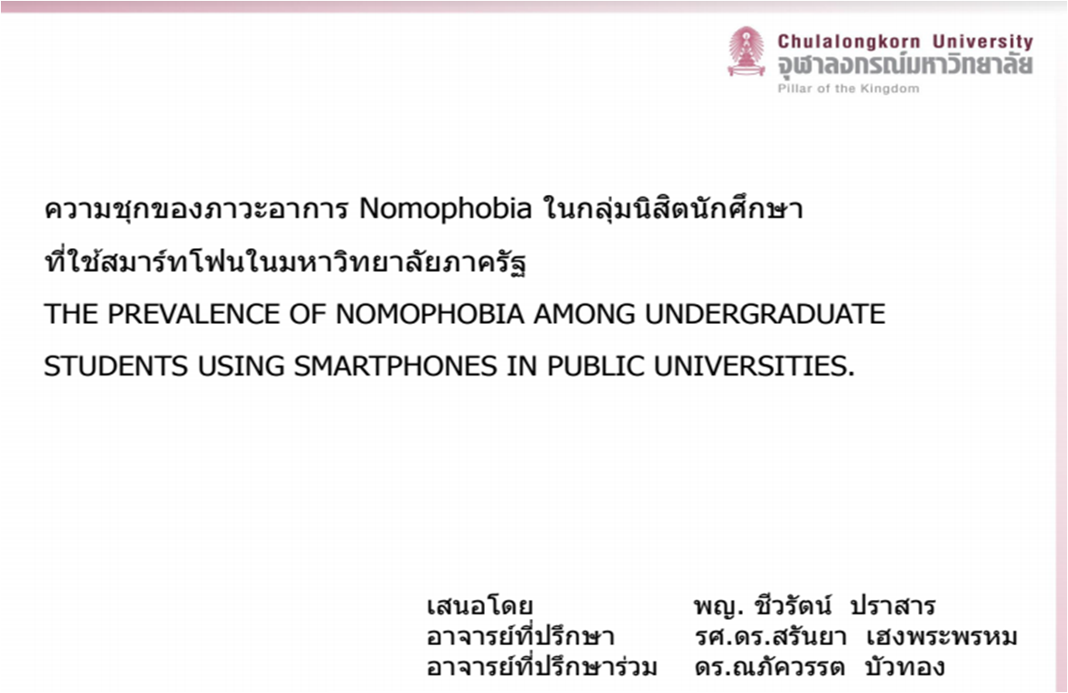 ความชุกของภาวะอาการ Nomophobia ในกลุ่มนิสิตนักศึกษาที่ใช้สมาร์ทโฟนในมหาวิทยาลัยภาครัฐ โดย พญ.ชีวรัตน์ ปราสาร
