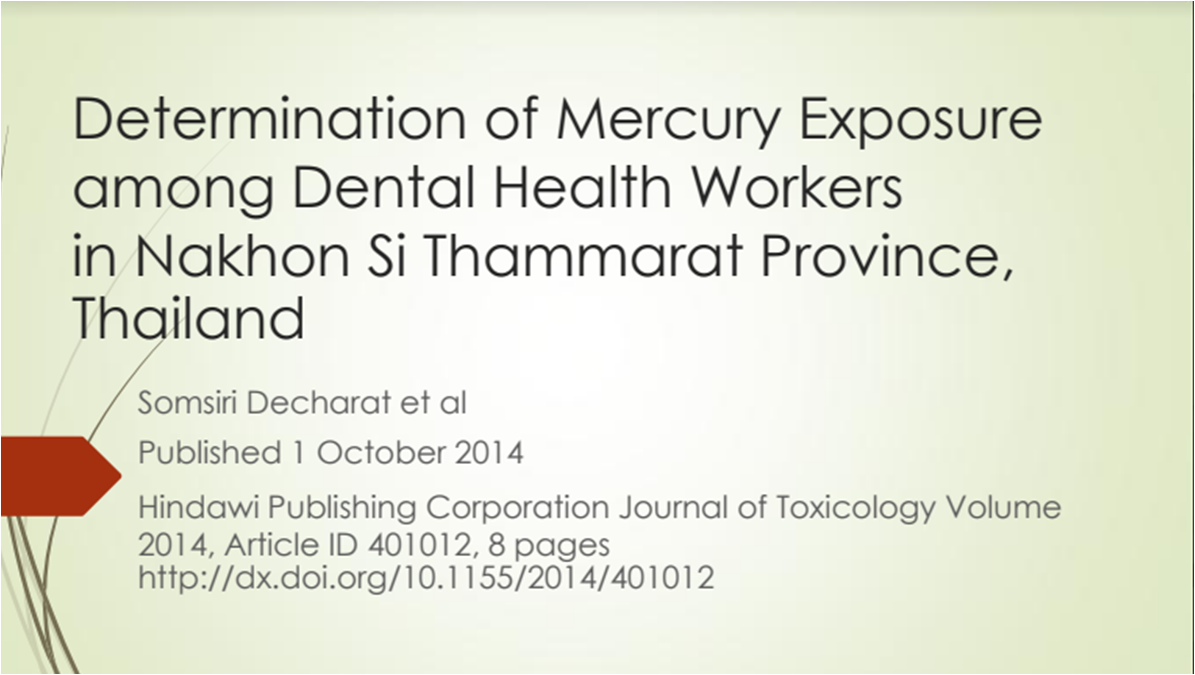 Determination of Mecury Exposure among Dental Health Workers in Nakhon Si Thammarat Province Thailand โดย Somsiri Decharat et al