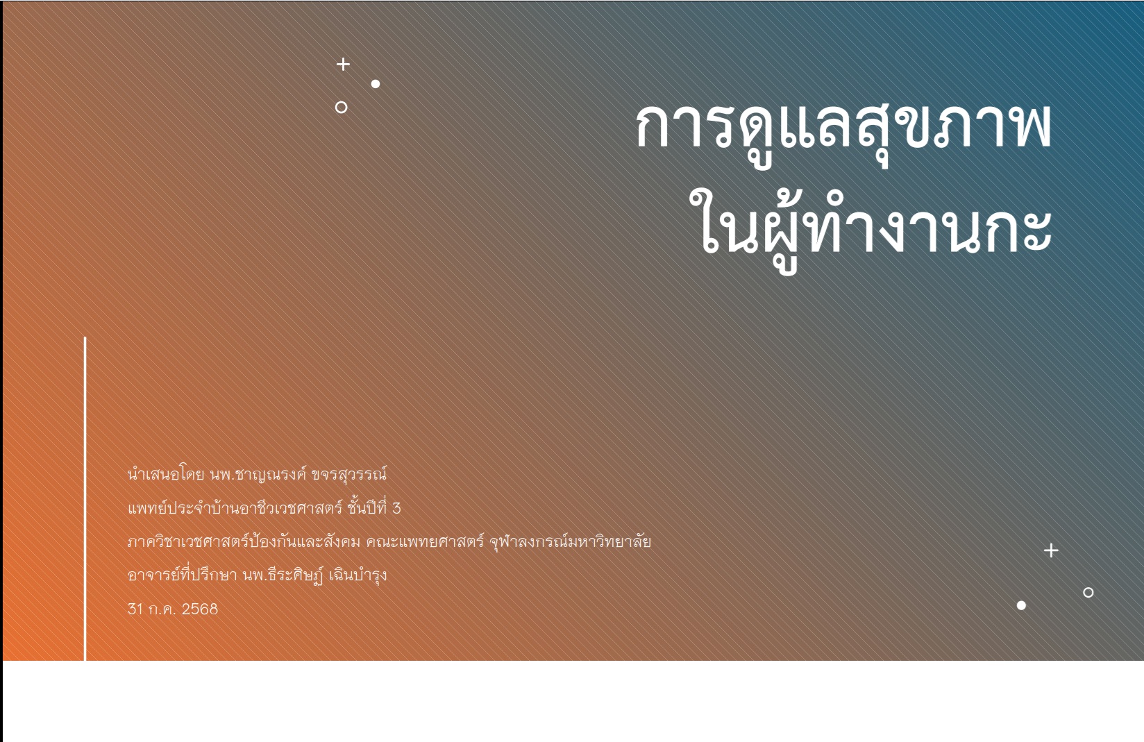 การดูแลสุขภาพในผู้ทำงานกะ โดย นายแพทย์ชาญณรงค์ ขจรสุวรรณ์