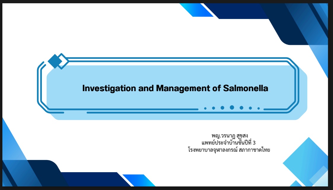 Investigation and Management of Salamonella โดย พญ วรนาฏ สุขสง