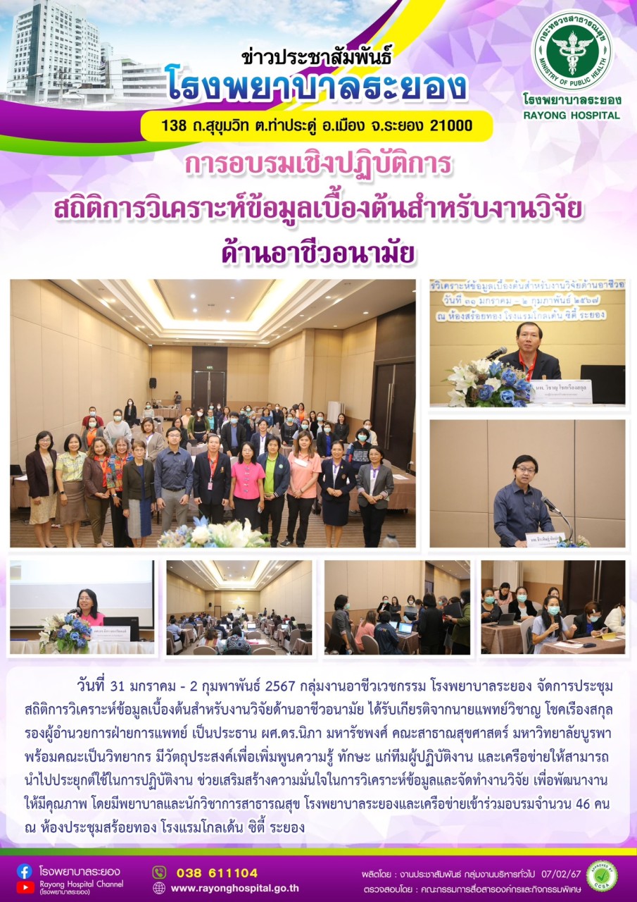 31มค.-2กพ.67 อบรมเชิงปฏิบัติการสถิติการวิเคราะห์ข้อมูลเบื้องต้นสำหรับงานวิจัยด้านอาชีวอนามัย