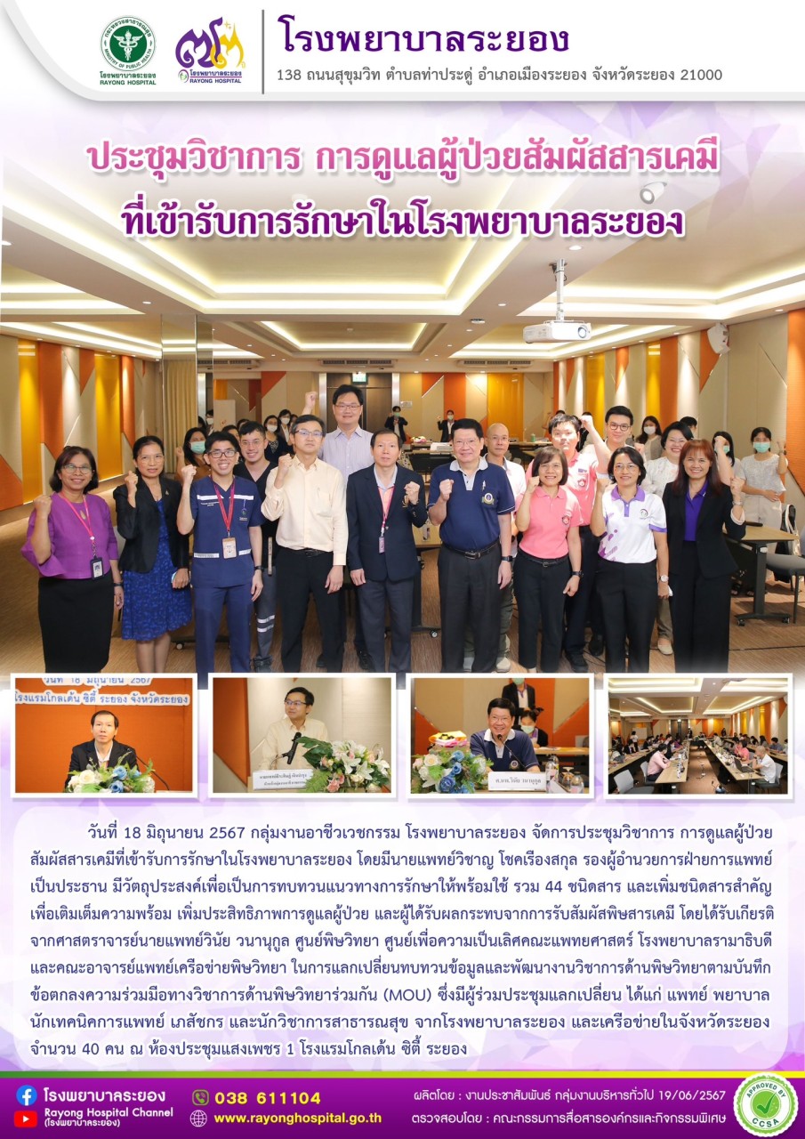 18 มิถุนายน 2567 ประชุมวิชาการการดูแลผู้ป่วยสัมผัสสารเคมีที่เข้ารับการรักษาในโรงพยาบาลระยอง