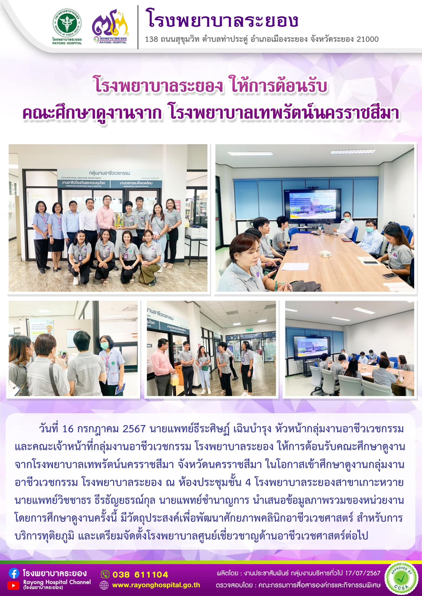 16 ก.ค. 67 ต้อนรับคณะศึกษาดูงานจากโรงพยาบาลเทพรัตน์นครราชสีมา