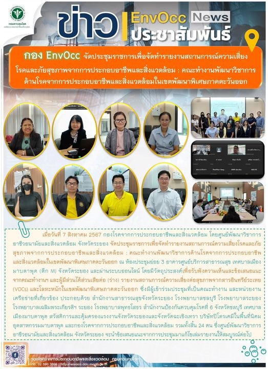 7ส.ค. 67 นพ.คงฤทธิ์ ภิญญโยวิวัฒน์ กลุ่มงานอาชีวเวชกรรม รพ.ระยอง ร่วมประชุม ให้ความเห็นการจัดทำรายงานสถานการณ์โรคและภัยสุขภาพในเขต EEC