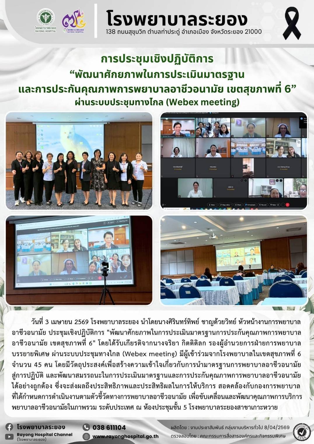 3 เม.ย 69 ประชุมเชิงปฏิบัติการ พัฒนาศักยภาพในการประเมินมาตรฐานและการประกันคุณภาพการพยาบาลอาชีวอนามัย เขตสุขภาพที่ 6