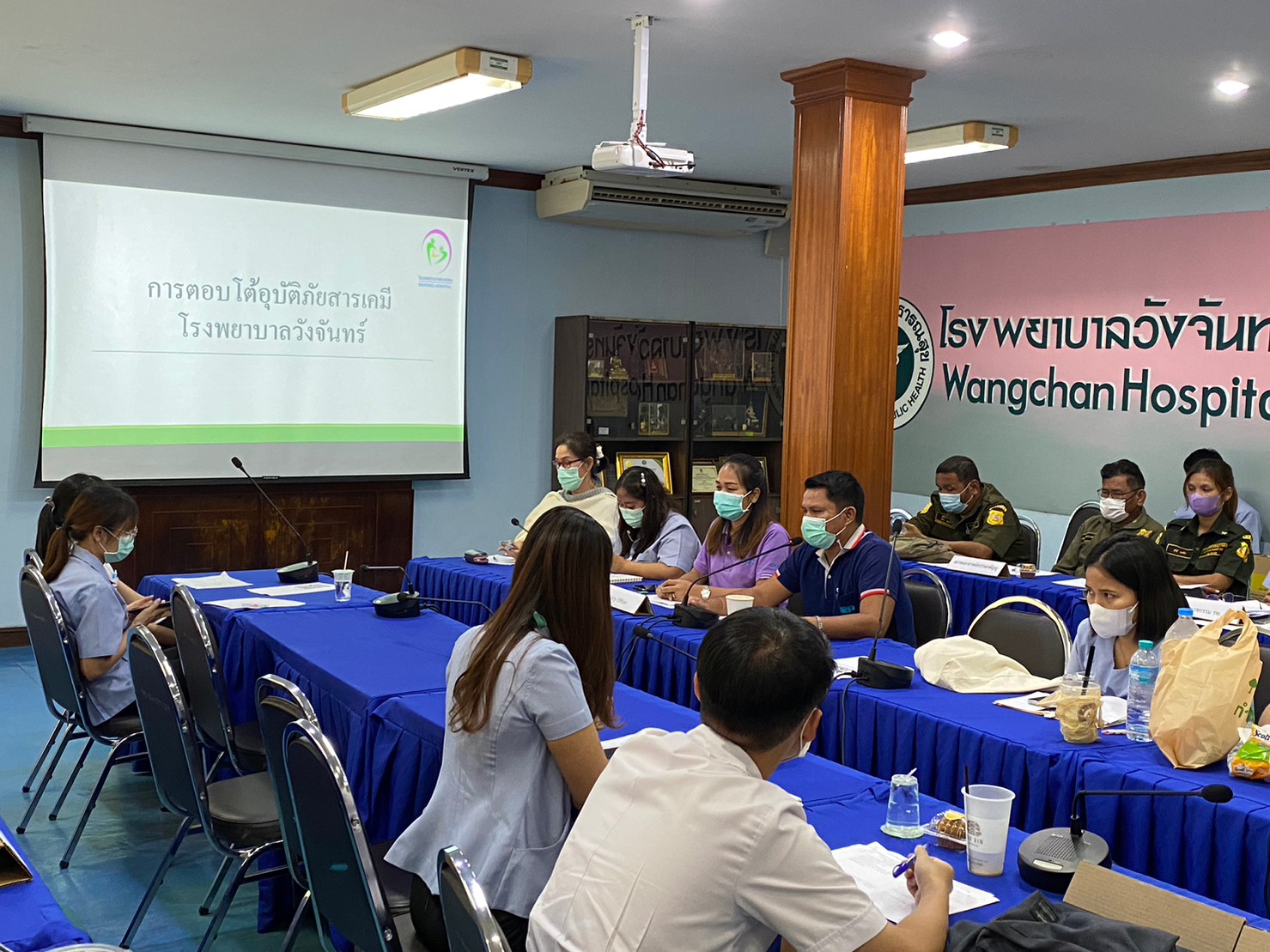 ศูนย์รักษาพิษสารเคมีอันตรายภาคตะวันออก กลุ่มงานอาชีวเวชกรรม โรงพยาบาลระยองสาขาเกาะหวาย ร่วมเป็นวิทยากร ให้ความรู้ การซ้อมแผนตอบโต้อุบัติภัยสารเคมี ณ โรงพยาบาลวังจันทร์ โดยมี นายแพทย์ภคพล เอี่ยมไพบูลย์พันธ์ หัวหน้างานอุบัติเหตุและฉุกเฉิน และแพทย์หญิงธมลวรรณ ดนัยสวัสดิ์ แพทย์อาชีวเวชศาสตร์ กลุ่มงานอาชีวเวชกรรม ร่วมบรรยายให้ความรู้ ก่อนการซ้อมแผน Table top ภาคบ่าย โดยผู้เข้าร่วมเป็นเจ้าหน้าที่รพ.พยาบาลวังจันทร์ มูลนิธิอาสาสมัครร่วมกตัญญู มูลนิธิเพชรเกษม และ เจ้าหน้าที่ความปลอดภัยโรงงาน SRP จำนวนทั้งหมด 60 คน เข้าร่วมอบรมในครั้งนี้