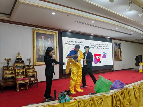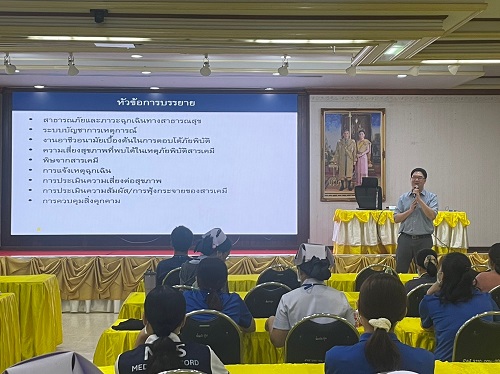 5 มี.ค.67 ศูนย์รักษาพิษสารเคมีอันตรายภาคตะวันออก กลุ่มงานอาชีวเวชกรรม นำทีมโดยนพ.คงฤทธิ์ ภิญโญวิวัฒน์ แพทย์อาชีวเวชศาสตร์ น.ส.อชิดา บุญเจริญ พยาบาลวิชาชีพชำนาญการ และน.ส.วิจิตรา กลิ่นหอม นักวิชาการสาธารณสุขชำนาญการ เป็นวิทยากรบรรยายให้ความรู้อบรมเชิงปฏิบัติการการซักซ้อมแผนเมื่อเกิดอุบัติเหตุและอุบัติภัยจากสารเคมีรั่วไหล ณ โรงพยาบาลสมเด็จพระยุพราชสระแก้ว จ.สระแก้ว บรรยายหัวข้อ “ระบบบัญชาการเหตุการณ์และระบบตอบโต้ภัยพิบัติสารเคมี”“การสวมอุปกรณ์ป้องกันส่วนบุคคลและการล้างตัว” กิจกรรมฐาน ฐานที่ 1 การสวมและถอดชุด PPE ฐานที่ 2 การจัดกลุ่มผู้ป่วยตามความรุนแรงในเหตุการณ์ฉุกเฉิน โดยมีเจ้าหน้าที่บุคลากรทางการแพทย์ เข้าร่วมจำนวน 50 คน