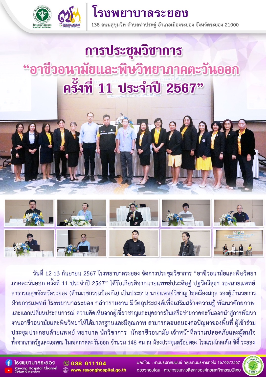 ประชุมวิชาการ อาชีวอนามัยและพิษวิทยาภาคตะวันออก ครั้งที่ 11 ประจำปี 2567