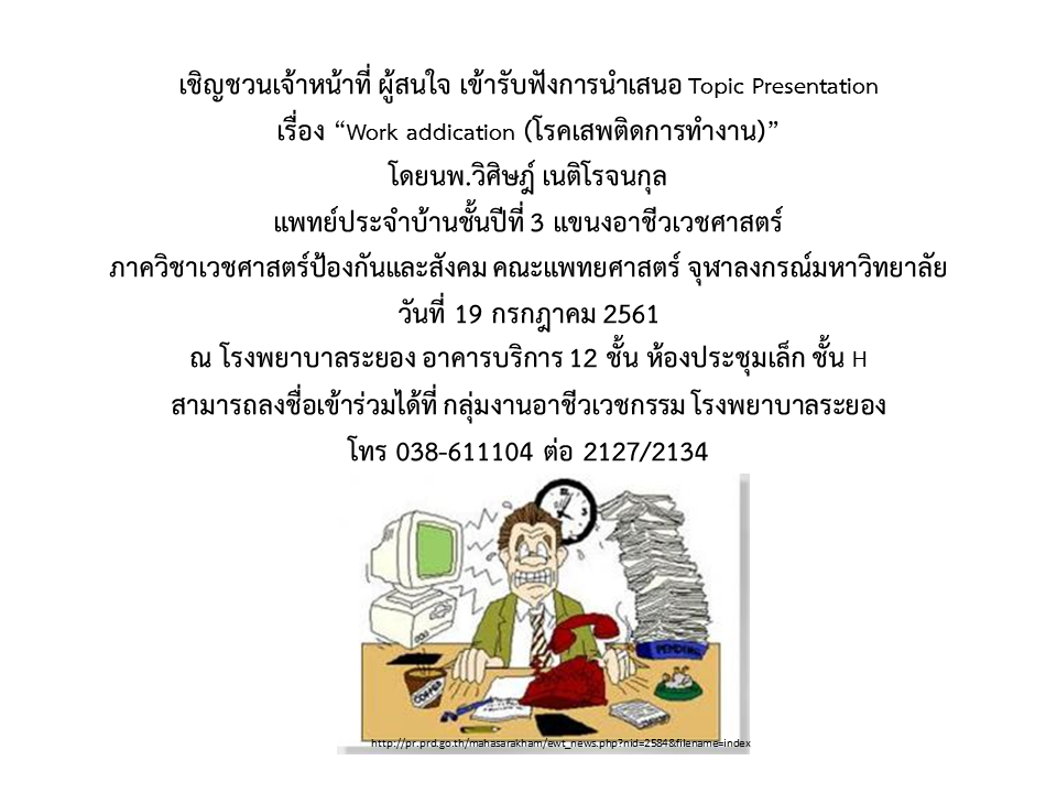 เชิญร่วมประชุม Topic presentation เรื่อง “Work addication (โรคเสพติดการทำงาน)”