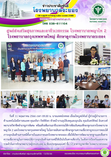 11 พ.ค. 66 ศูนย์ส่งเสริมสุขภาพและอาชีวเวชกรรม โรงพยาบาลพญาไท 2 โรงพยาบาลกรุงเทพหาดใหญ่ ศึกษาดูงานโรงพยาบาลระยอง