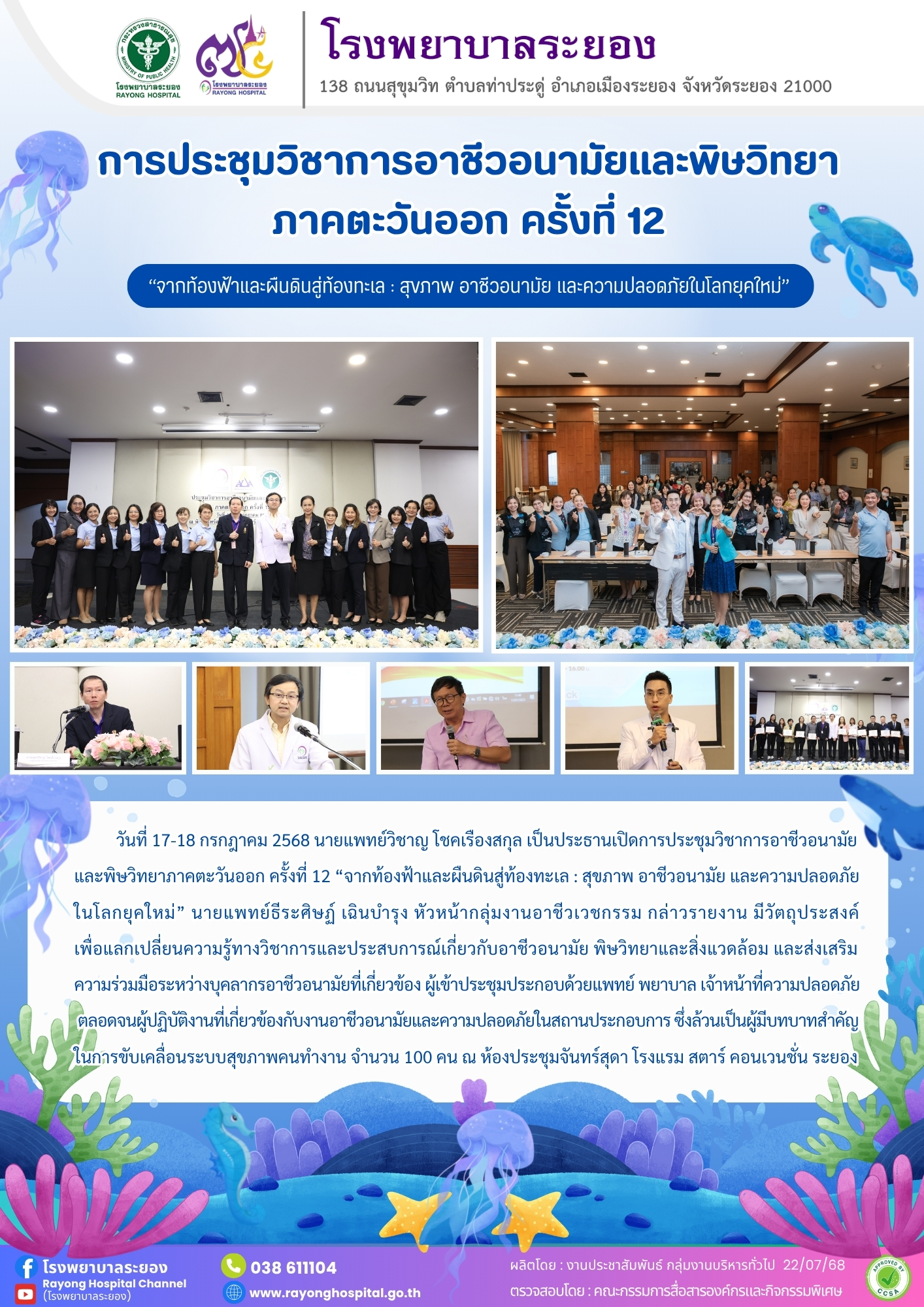 17-18 การประชุมวิชาการอาชีวอนามัยและพิษวิทยาภาคตะวันออกครั้งที่ 12