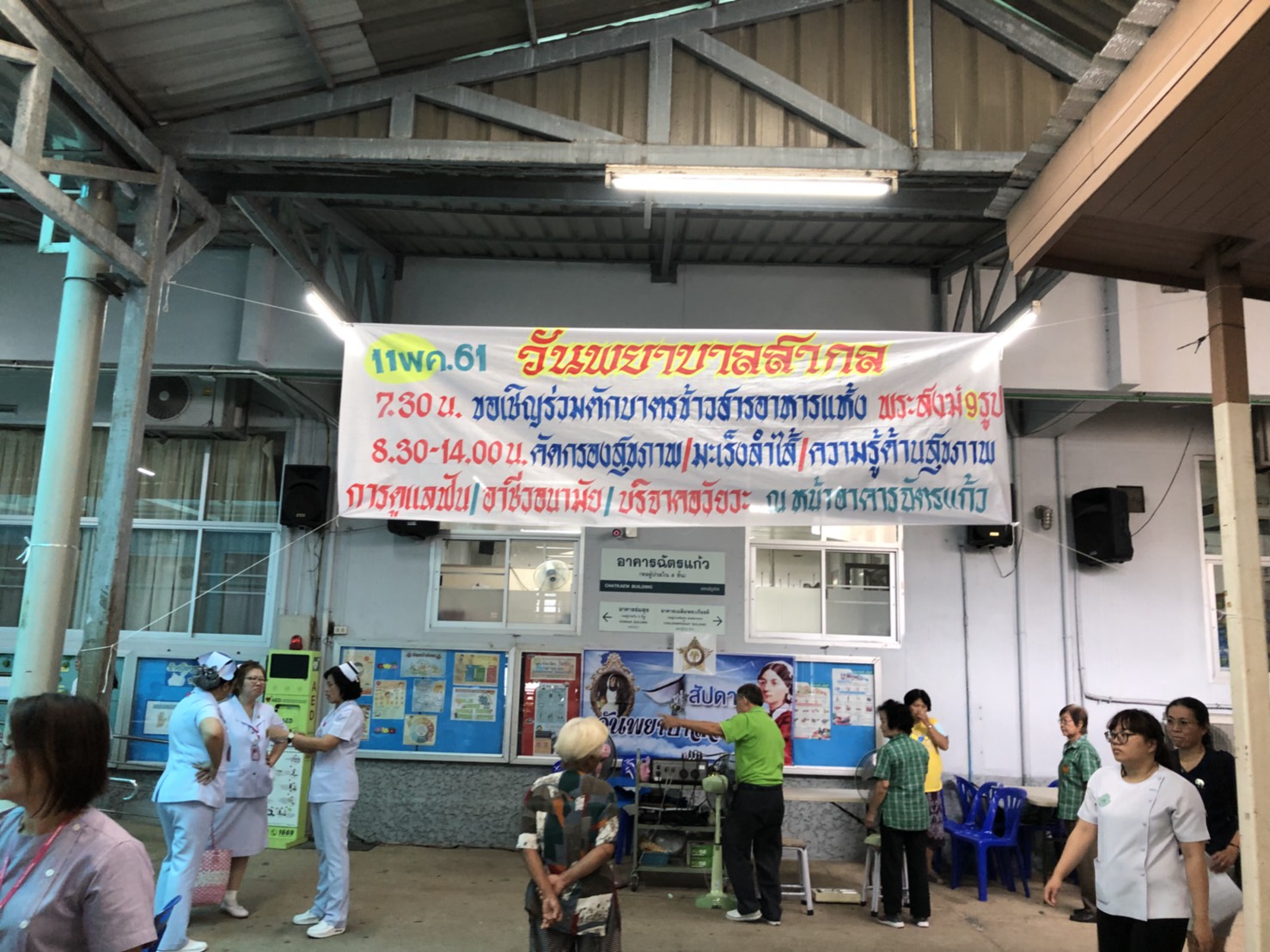 กลุ่มงานอาชีวเวชกรรมร่วมกิจกรรมจัดบูทสุขภาพ ตักบาตรข้าวสารอาหารแห้งเนื่องในวันพยาบาลสากล ร่วมกับหน่วยงานต่างๆ ณ ลานกิจกรรมหน้าอาคารฉัตรแก้ว โรงพยาบาลระยอง ซึ่งในบูทกิจกรรมมีการให้ความรู้เรื่องสุขภาพ แจกแผ่นพับความรู้ กิจกรรมวัดความดันโลหิต และตรวจตาบอดสี ให้กับประชาชน และญาติผู้ป่วยที่สนใจ