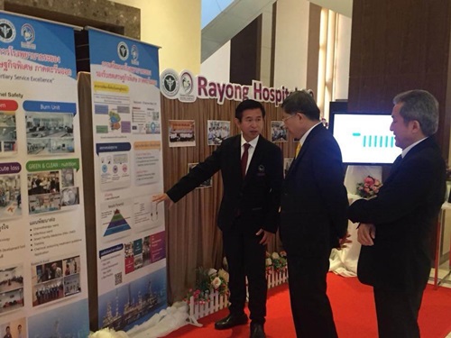 7-9 พ.ค. 2561 รพ.ระยอง ได้รับคัดเลือกให้นำเสนอผลงานการเตรียมความพร้อม รพ.ระยองเพื่อรองรับการพัฒนาพื้นที่เศรษฐกิจพิเศษ โดยมี ผอ.นพ.วิฑูรย์ ด่านวิบูลย์ เป็นผู้นำเสนอผลงานให้กับนายกสมาคมบริหารสาธารณสุข นพ.โสภณ เมฆธน ได้รับคำชื่นชมและกำลังใจจากผู้เยี่ยมชมบูธนิทรรศการ อย่างต่อเนื่อง ในการประชุมวิชาการประจำปี 2561