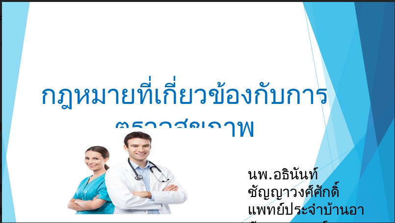 กฏหมายที่เกี่ยวข้องกับการตรวจสุขภาพ โดย นพ.อธินันท์ ชัญญาวงศ์ศักดิ์