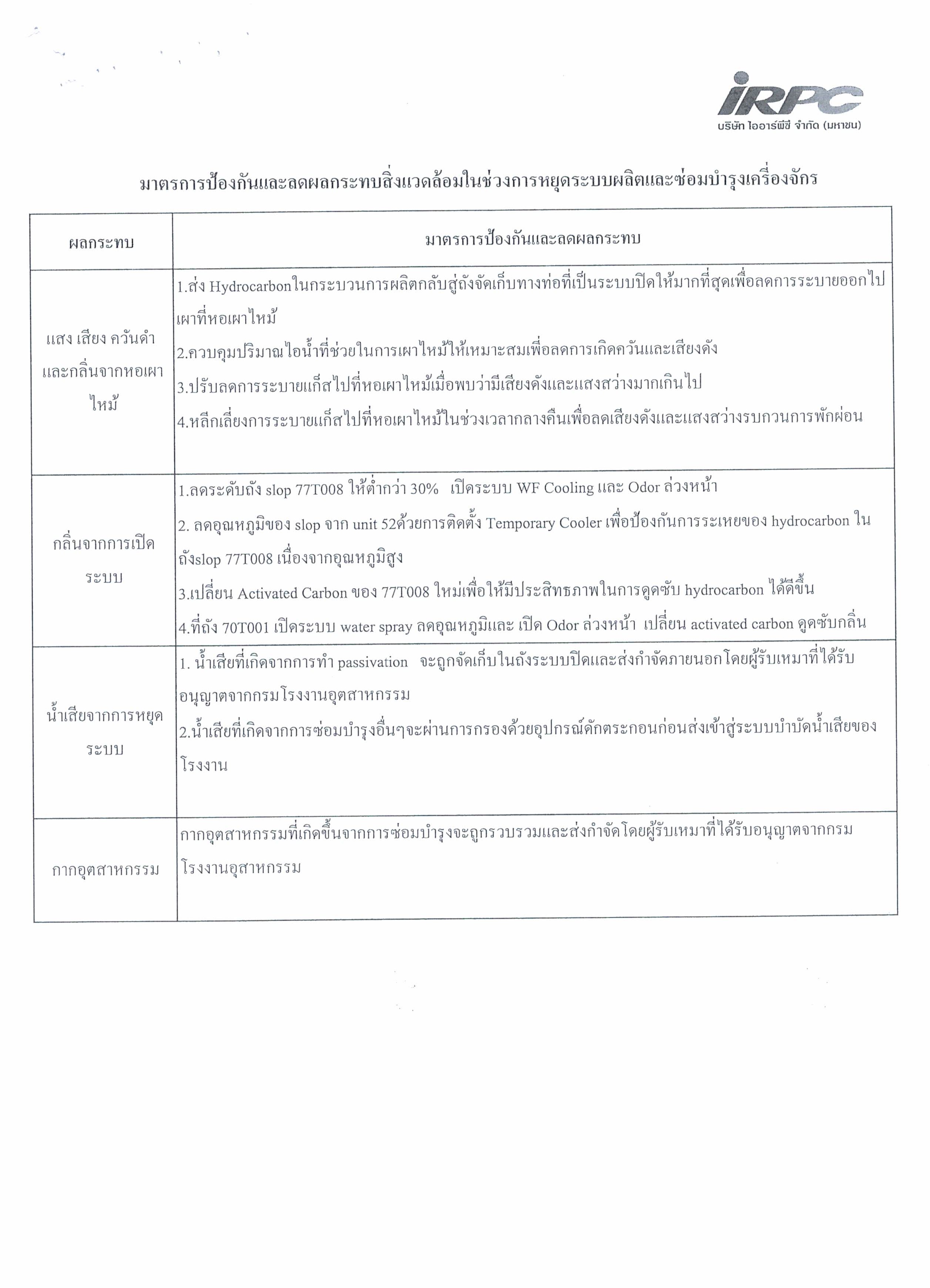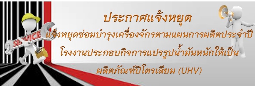 ประกาศแจ้งหยุดซ่อมบำรุงเครื่องจักรตามแผนการผลิตประจำปี